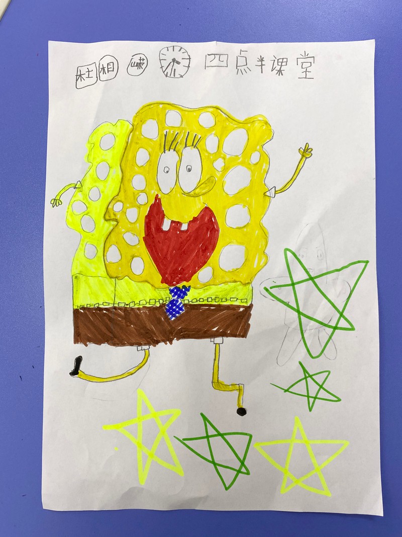 本次授課主要圍繞“海綿寶寶和派大星”進(jìn)行簡(jiǎn)筆卡通繪畫。通過(guò)講解示范讓小朋友們知道具體的繪畫步驟,在小朋友繪畫創(chuàng)作的同時(shí)進(jìn)行指導(dǎo)修改。不一會(huì)兒,一幅幅精美的作品就呈現(xiàn)在大家的眼前了。